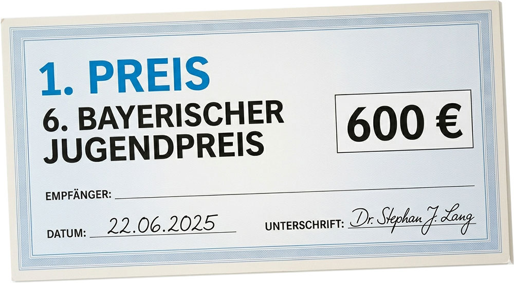Wenn Ihr in Bayern zur Schule geht und dabei nicht jünger als 15 und nicht älter als 18 Jahre seid, dann könnt Ihr beim Bayerischen Jugendpreis mitmachen.
