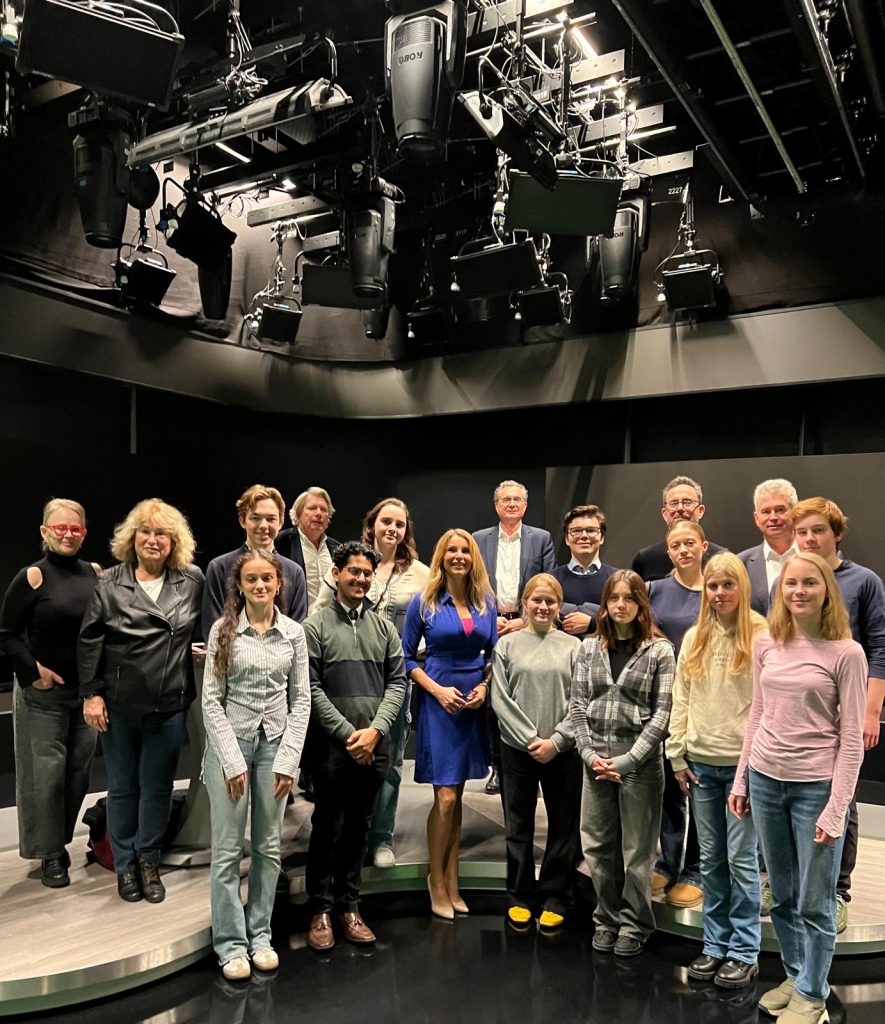 Der Besuch im „Welt“ TV-Studio öffnete den Blickwinkel für allumfassende journalistische Arbeit im TV, hervorragend erklärt durch den stellvertretenen TV Chefredakteur Ronald Warin. Im Mittelpunkt des Fotos: Moderatorin Maira Rothe.
